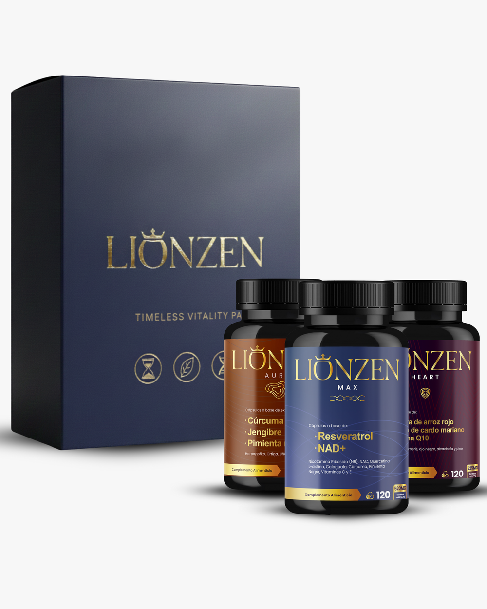 Incluye 1x Lionzen Aura, 1x Lionzen Heart y 1x Lionzen Max, una combinación diseñada para mejorar tu vitalidad diaria, proteger tu bienestar interno y potenciar una vida más equilibrada y duradera.